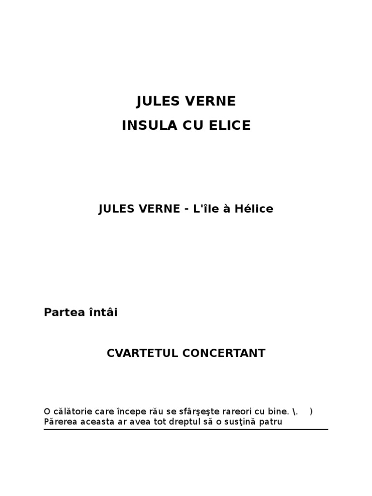 Dar din pacate a fost sfasiat de vant pe cand era deasupra oceanului iar echipajul a ajuns cu greu pe insula numita apoi de ei lincoln. Avem o baza de date care creste pe zi ce trece si suntem siguri ca daca nu acum in viitorul apropiat cu siguranta o sa adaugam referatul insula elice rezumat. Insula cu elice în franceză l île à hélice este un roman scris de jules verne în 1895 publicat pentru prima dată în magasin d éducation et de récréation foaie de instruire și desfătare de la 1 ianuarie la 15 decembrie apoi în volum la 21 noiembrie. Patru muzicieni francezi excelenti.
