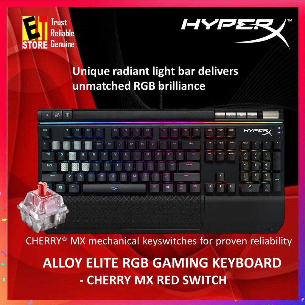 It comes equipped with a unique radiant light bar and a solid steel frame to help you maintain a firm grip on the keyboard while playing high intensity games and to elevate the look of your entire gaming console. 480hx kb2002 a01 hyperx alloy elite rgb mechanical gaming keyboard page 1 of 5 hyperx alloy elite rgb mechanical gaming keyboard part numbers cherry mx blue cherry mx brown cherry mx red hx kb2bl2 uk r1 hx kb2bl2 fr r1 hx kb2bl2 de r1 hx kb2bl2 no r1 hx kb2bl2 ru r1 hx kb2bl2 la r2 hx kb2bl2 us r1 hx kb2bl2 us r2. Hyperx is a division of kingston technology company inc. The alloy elite wows with its dynamic lighting effects stunning hyperx red back lighting and dazzling 18 led light bar that delivers unmatched brilliance.