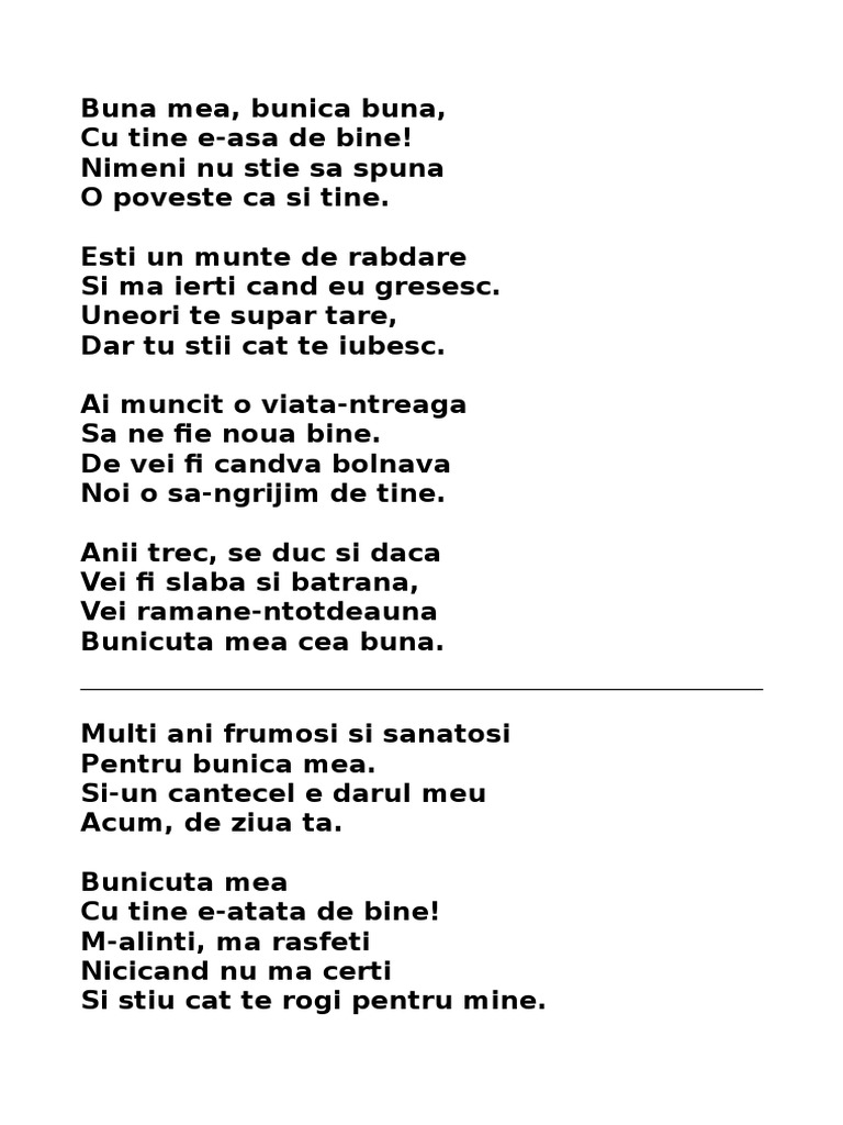 Iată 10 dintre cele mai frumoase poezii pentru bunica. La multi ani bunica. La multi ani bunicule. Faţa i blândă e brăzdată dar nu i tristă niciodată şi chiar dacă oboseşte în ochi soarele i sclipeşte.
