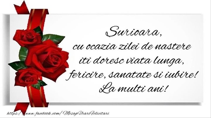 La multi ani sora mea mai mare. Esti prietena mea cea mai buna asa ca vreau sa fiu prima care iti ureaza multa multa sanatate impliniri viata frumoasa si cat mai multi prieteni adevarati. Soră azi e ziua ta de naștere. Sora mea dragă și iubită. îți doresc ca viața ta să fie înflăcărată de iubire strălucitoare de fericire și armonioasă față de.