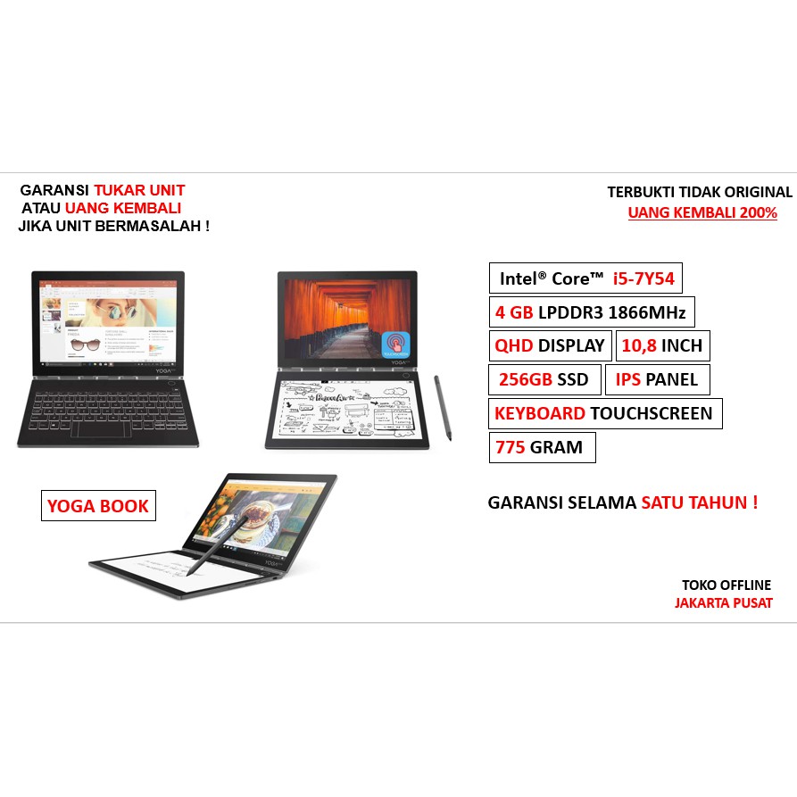 Lenovo yoga book c930 10icr qhd i5 7y54 4gb 256ssd w10 touchscreen key. Cari produk ultrabook lainnya di tokopedia. Jual lenovo yoga book c930 i5 7y54 4gb 256gb 128 128 w10 10 8qhd dengan harga rp13 899 000 dari toko online rog online jakarta pusat. 2019 lenovo yoga book c930 2 in 1 10 8 qhd touchscreen tablet laptop computer intel core i5 7y54 up to 3 2ghz 4gb ram 128gb ssd active pen touch e ink keyboard fingerprint reader windows 10 3 7 out of 5 stars 9.